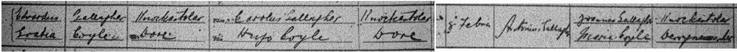 Note : Connell Doherty, Mageralosk,  son of Owen Doherty and Bridget Doogan, married Anne Boyle (Dolty) on 5 Feb 1891 in