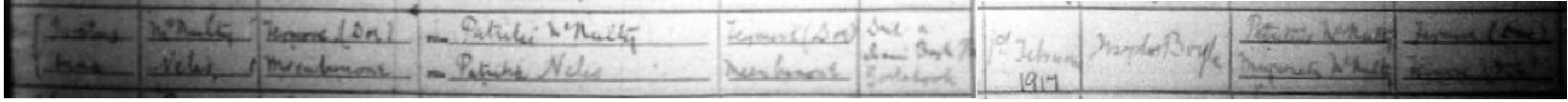 Chapel on 1 Feb 1917. Witnesses ? McNulty and Margaret McNulty, Faymore.