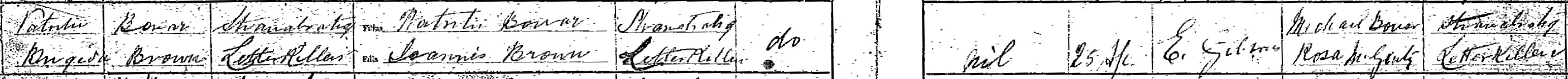 Patrick Bonar, son of Patrick, m Bridget Brown, dau of John, Stroangarrow/Letterhillue, 25 Apr 1895 - see scan from marriage register